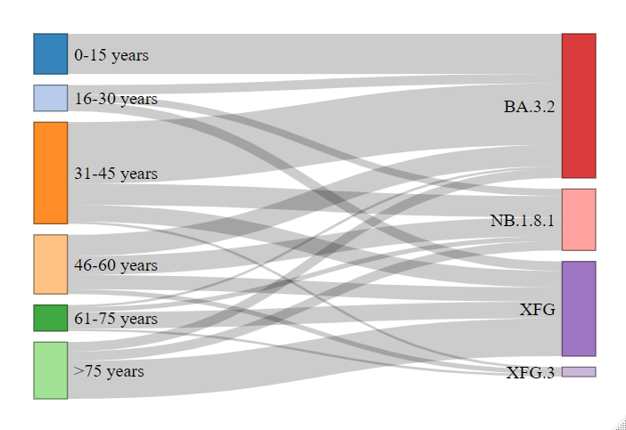SARS-CoV-2 Variant Distribution by Age Group (2026/06-09)